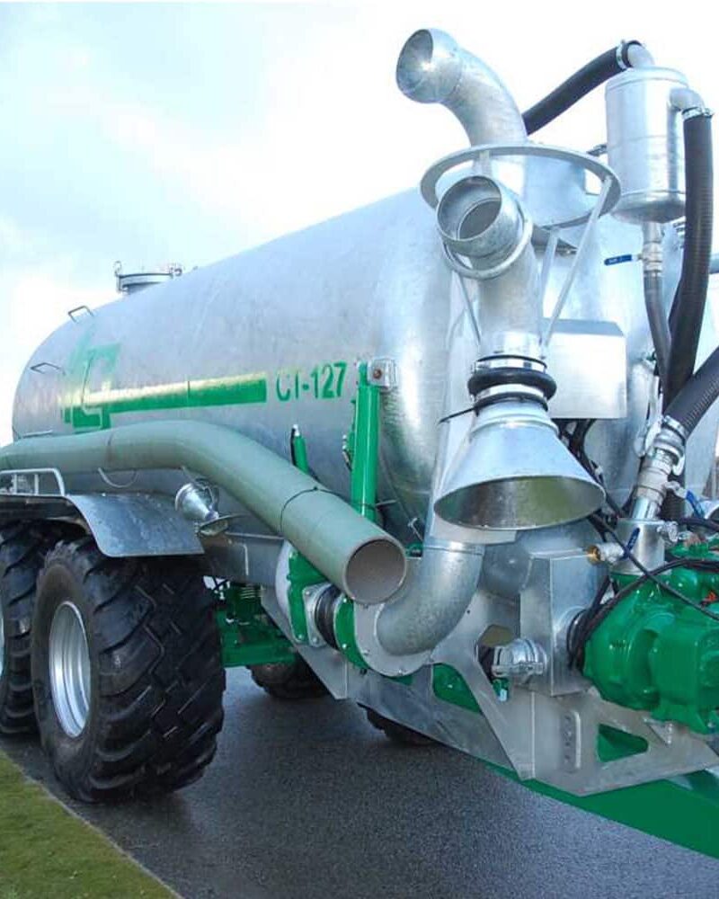| CT127 | 12.700 L | 2 axles of 90# 8 studs. Track 2000. Brake 350x60 | 4 tires 550/60-22,5 Flotation | 1.800 mm Ø | 2.350 mm | 5.530 (tank) 7.060 (total) | 4.000 kg | 18.000 kg | 2.500 kg |
