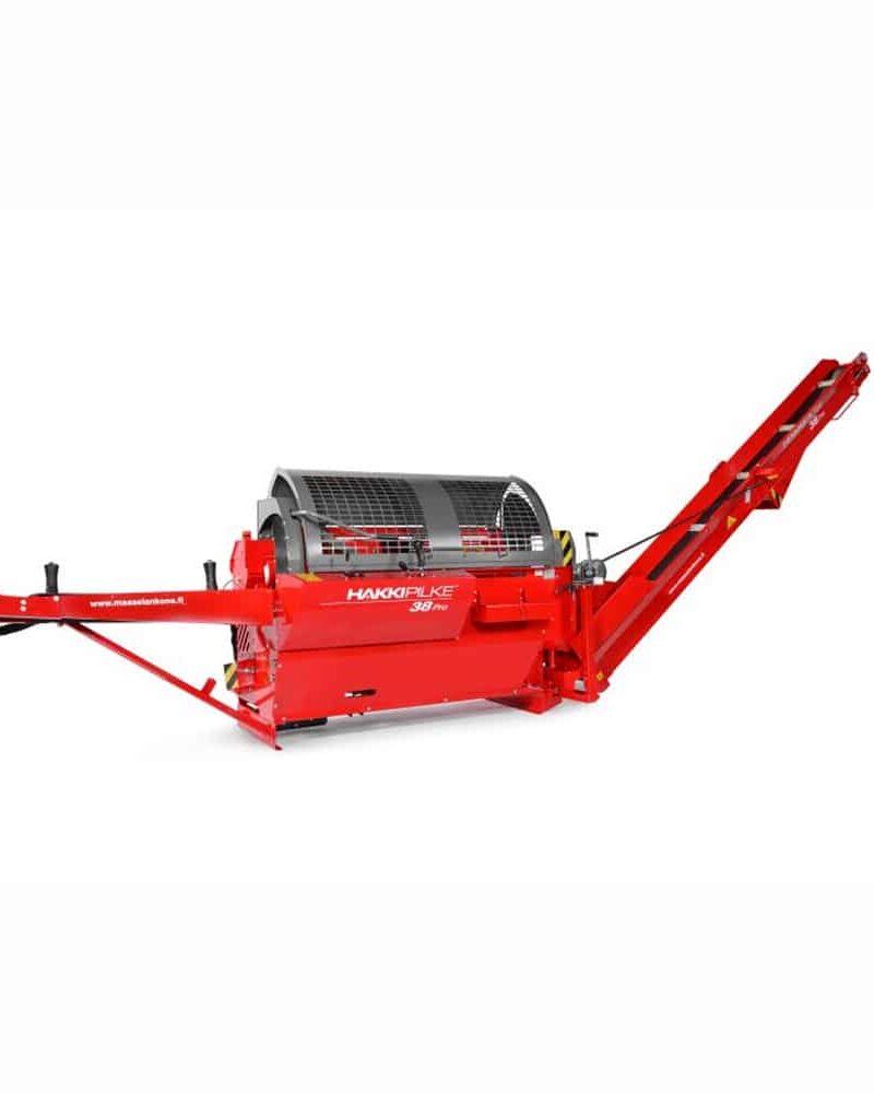 Hakki Pilke 38 Pro en effektiv vedmaskin med HakkiCut kappekontroll som lar deg sage med et enkelt trykk på joysticken. AC 10 automatisk mekanisk kjedestrammer som forlenger levetiden på kjede og sverd. 38 Pro har en klyvekraft på 10 tonn og en klyvesyklus på max 3 sekunder med 2 trinn som skifter uten opphold, 4-meter svingbar transportør m/hydraulisk drift som også kan reverseres. Hydraulisk justering av knivhøyde.